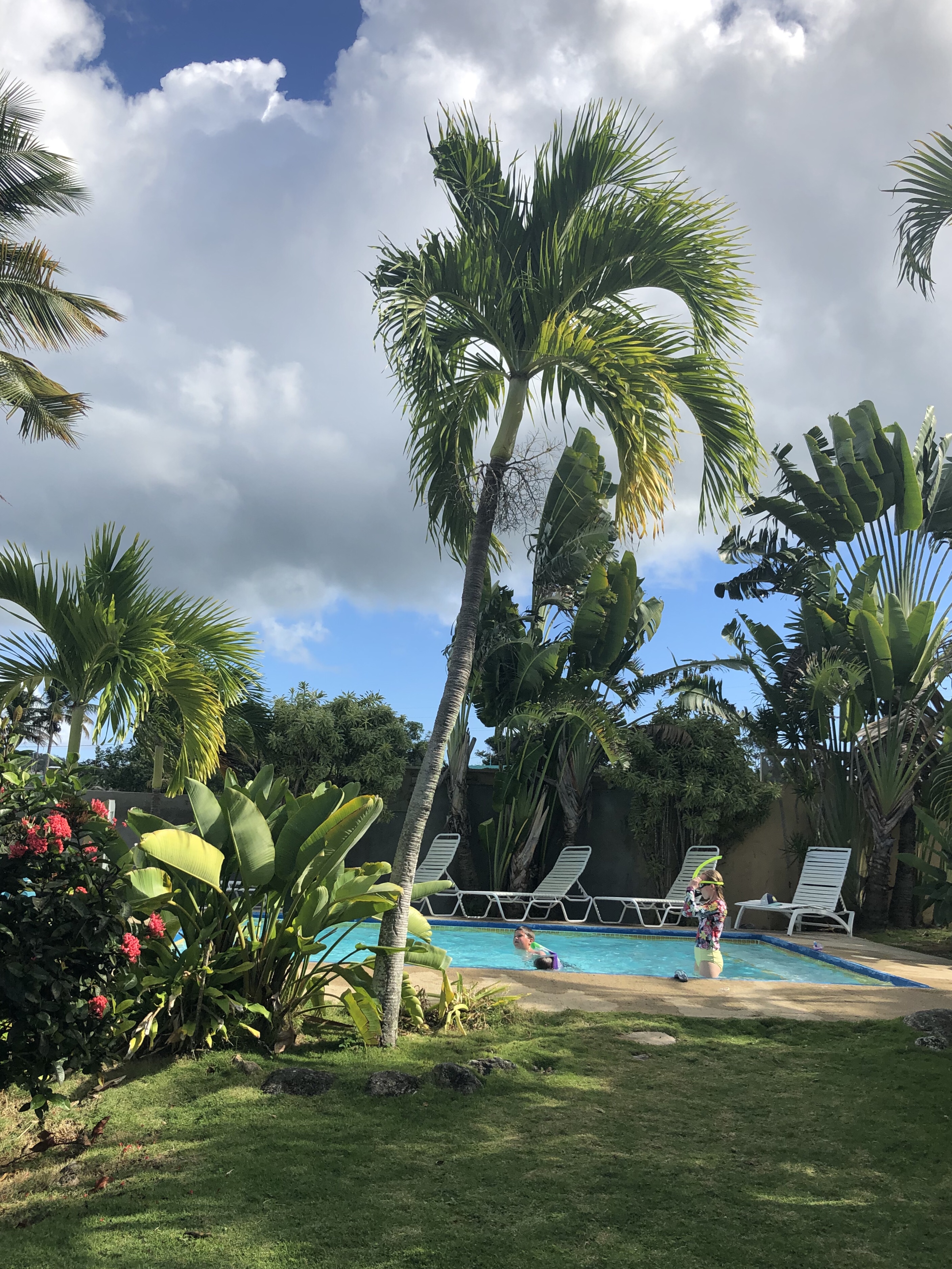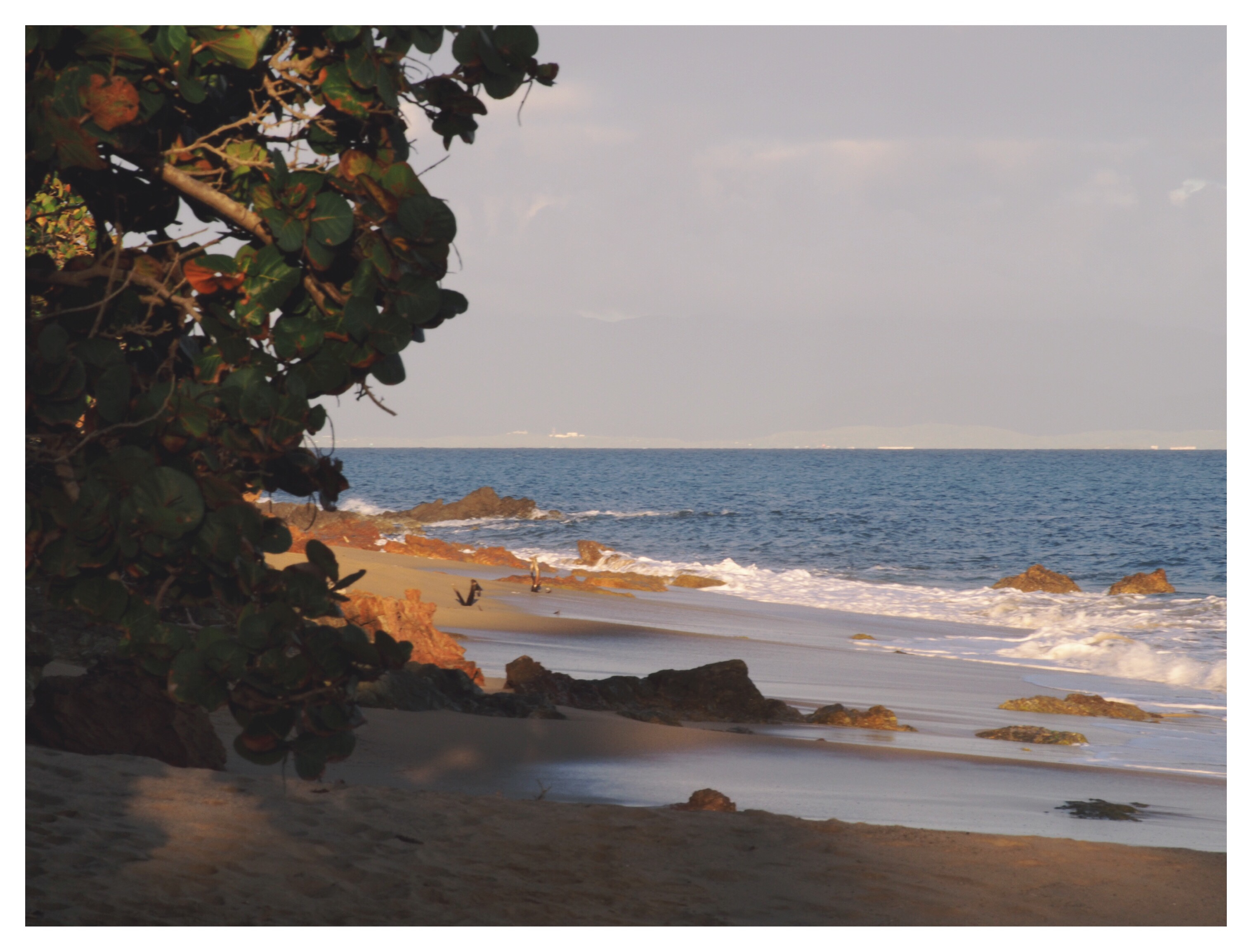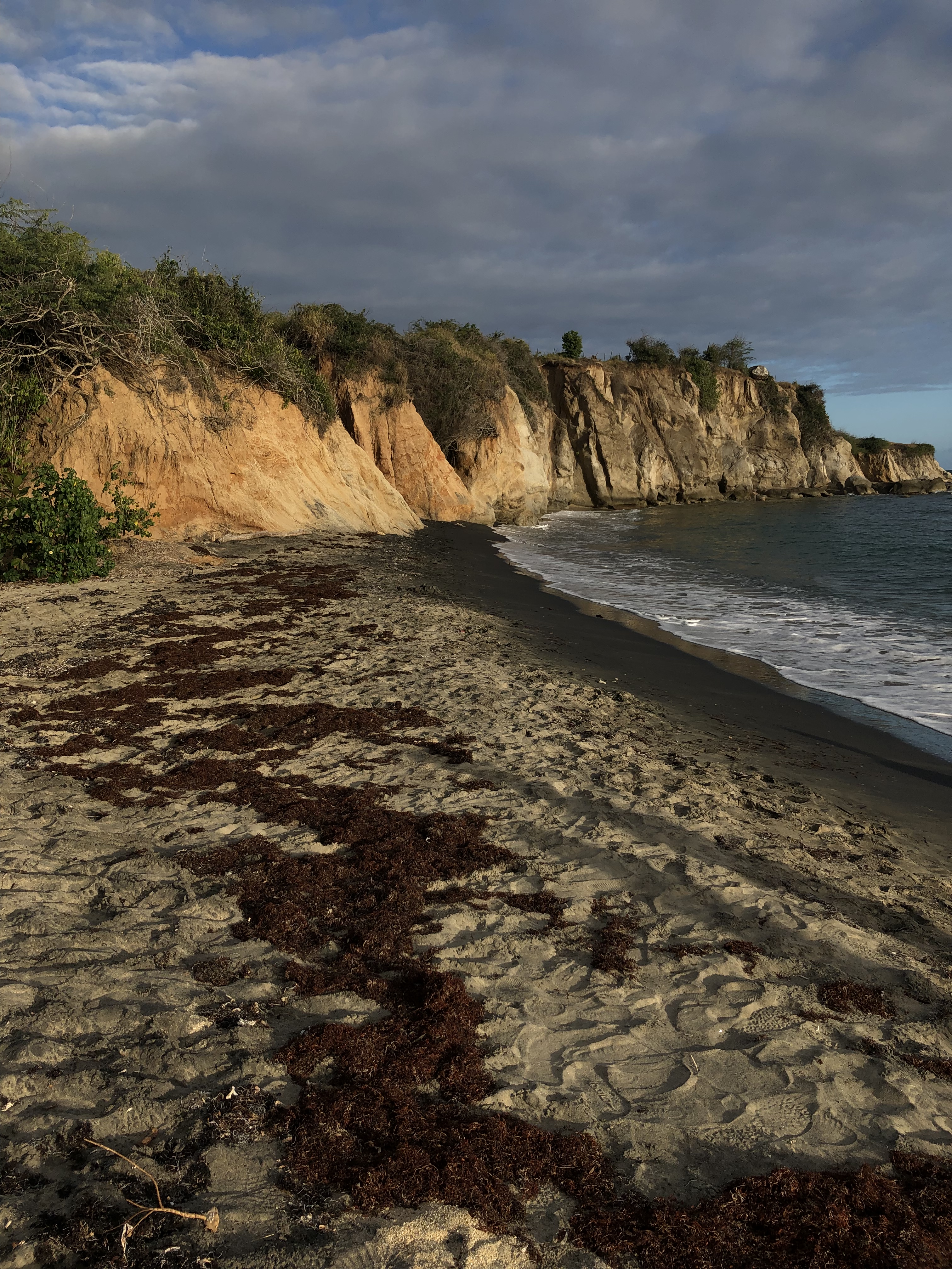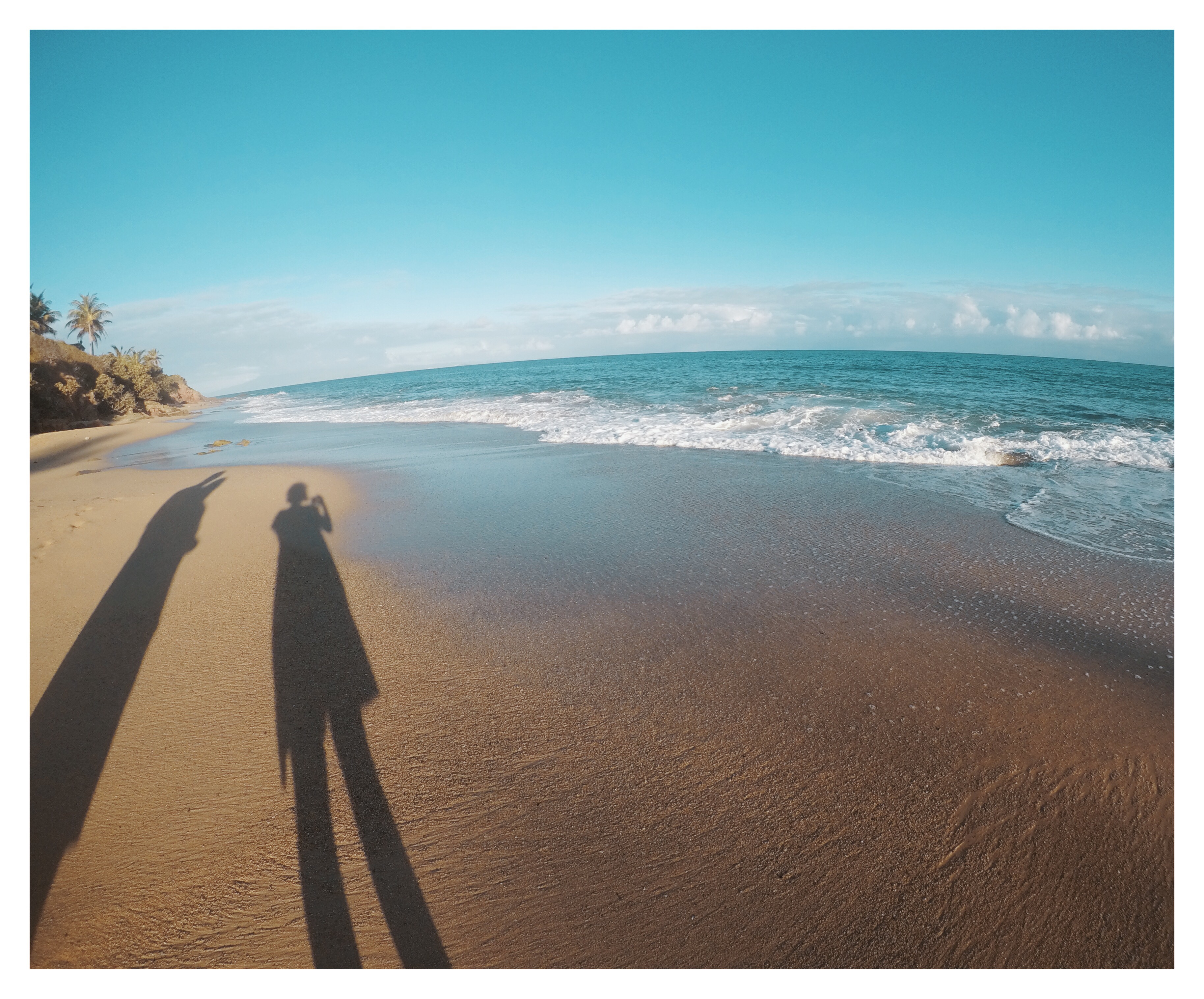 We woke to the sound of ocean waves (!!!!!) and roosters. In fact, we heard both all night long. The house we are renting has its own access to the beach. Danny and I went out there as soon as we were up. We didn’t quite make sunrise, but we were close. I love the long shadows of the early morning.