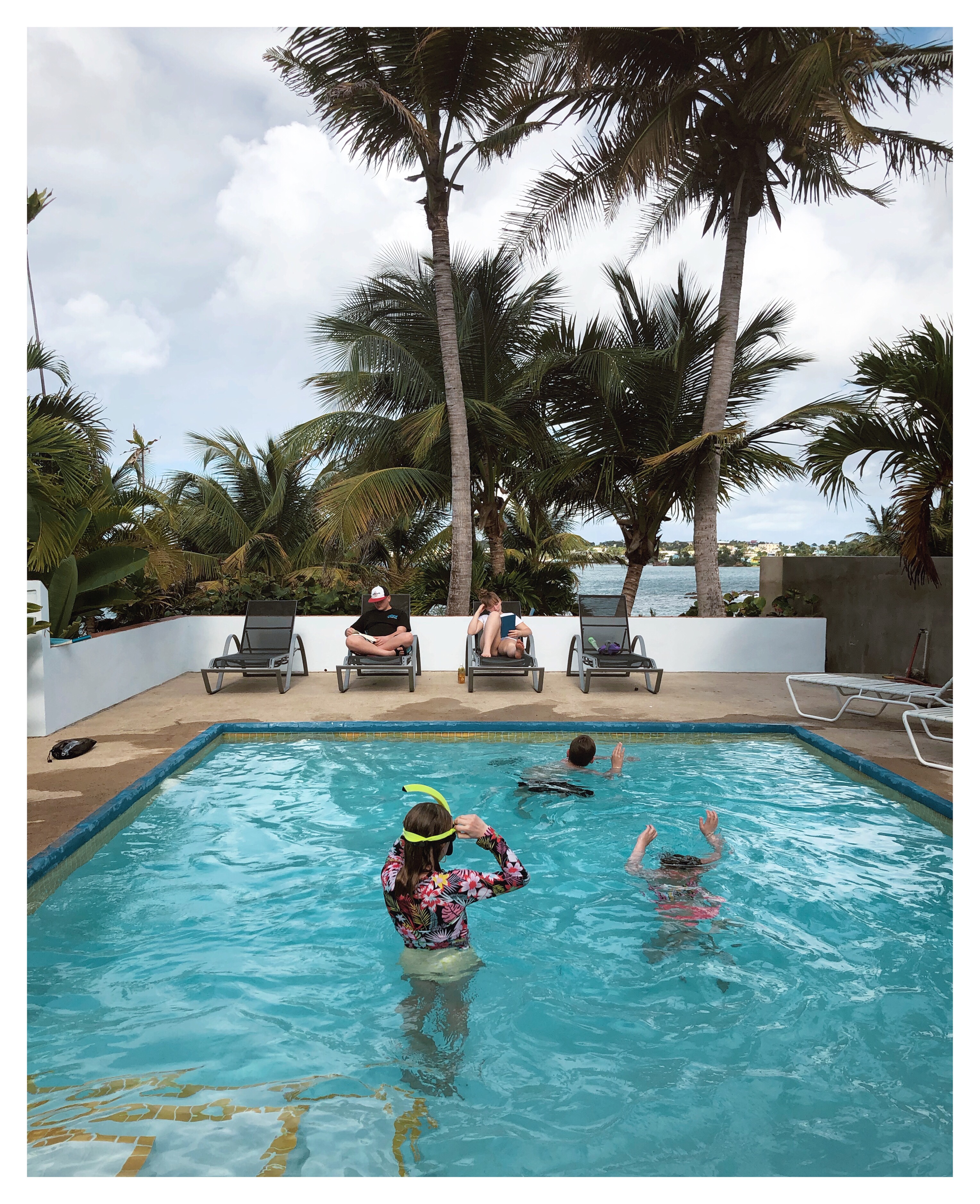We are SO grateful for this beach house. It was actually quite an ordeal to get it. When we arrived yesterday we had a different reservation. We went into that house and were not thrilled. There was a leaking generator next to the dining room table, a toilet that wouldn’t flush, a mouse trap on the kitchen floor and a cockroach that met has at the door. (among other things). Our friend Dan made the executive decision-we weren’t staying there.