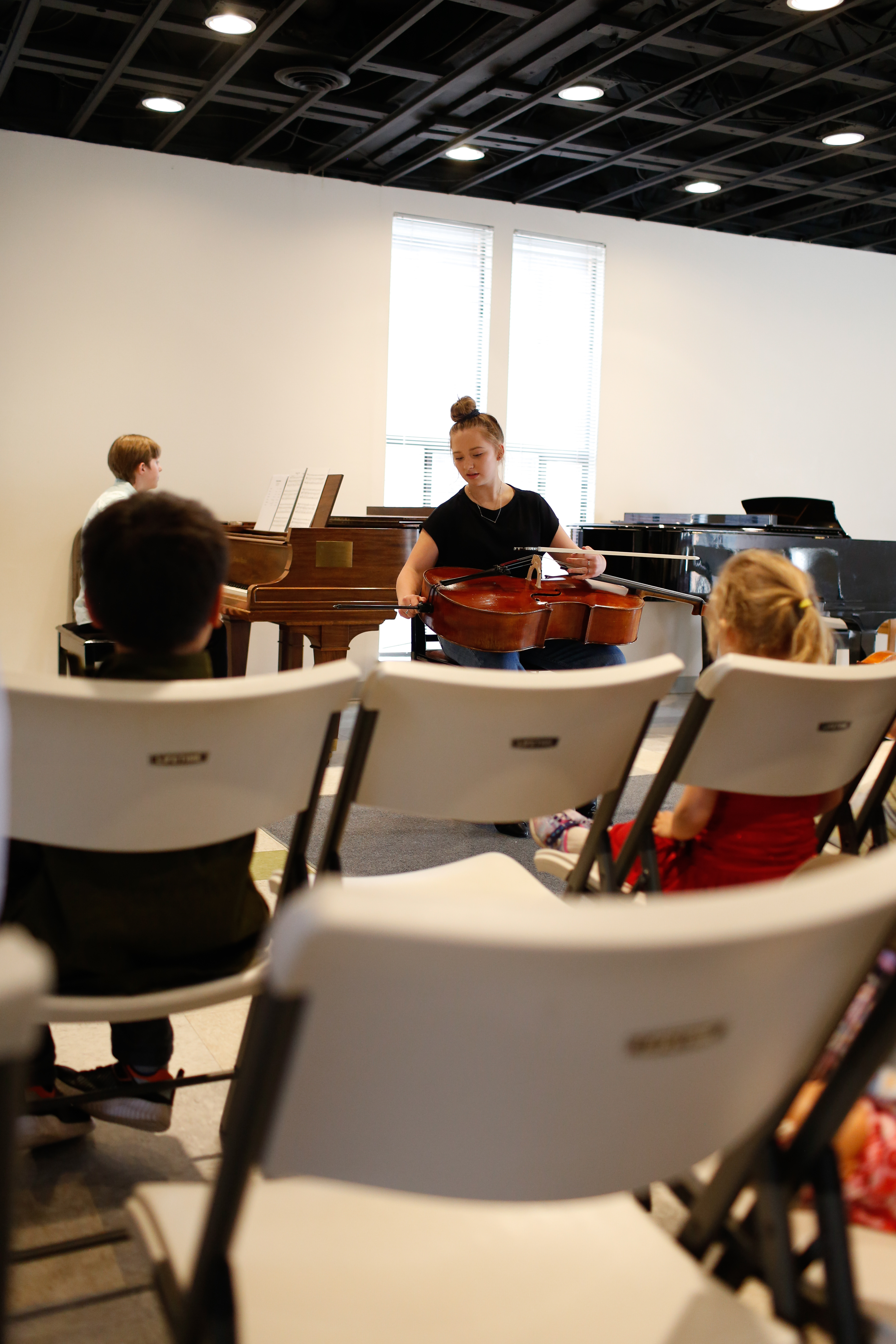 If I could pick a song to lull me sweetly to sleep every night, it would be Kate playing CHANSON TRISTE. It is so beautiful, especially when she plays it. We attended Kate’s recital after Sophie’s tumbling meet today. As she was packing up, one of the other parents of a younger student said to Kate, “people should pay to hear you play.” It was so sweet to take the time to say something so uplifting to her. It meant the world to her. We did loudly applaud the adult cellist who performed TWINKLE TWINKLE LITTLE STAR, the first song in the Suzuki repetoir. I wish I had audibly told him how impressed I was with his performance (it was precise and clear!) with his wife and two children cheering him on, with the proudest faces. I sometimes focus on the hardship and stress of music on my kids. Tonight I was reminded what is so beautiful and worthwhile about it. And I am always thrilled to hear Kate play. ๐