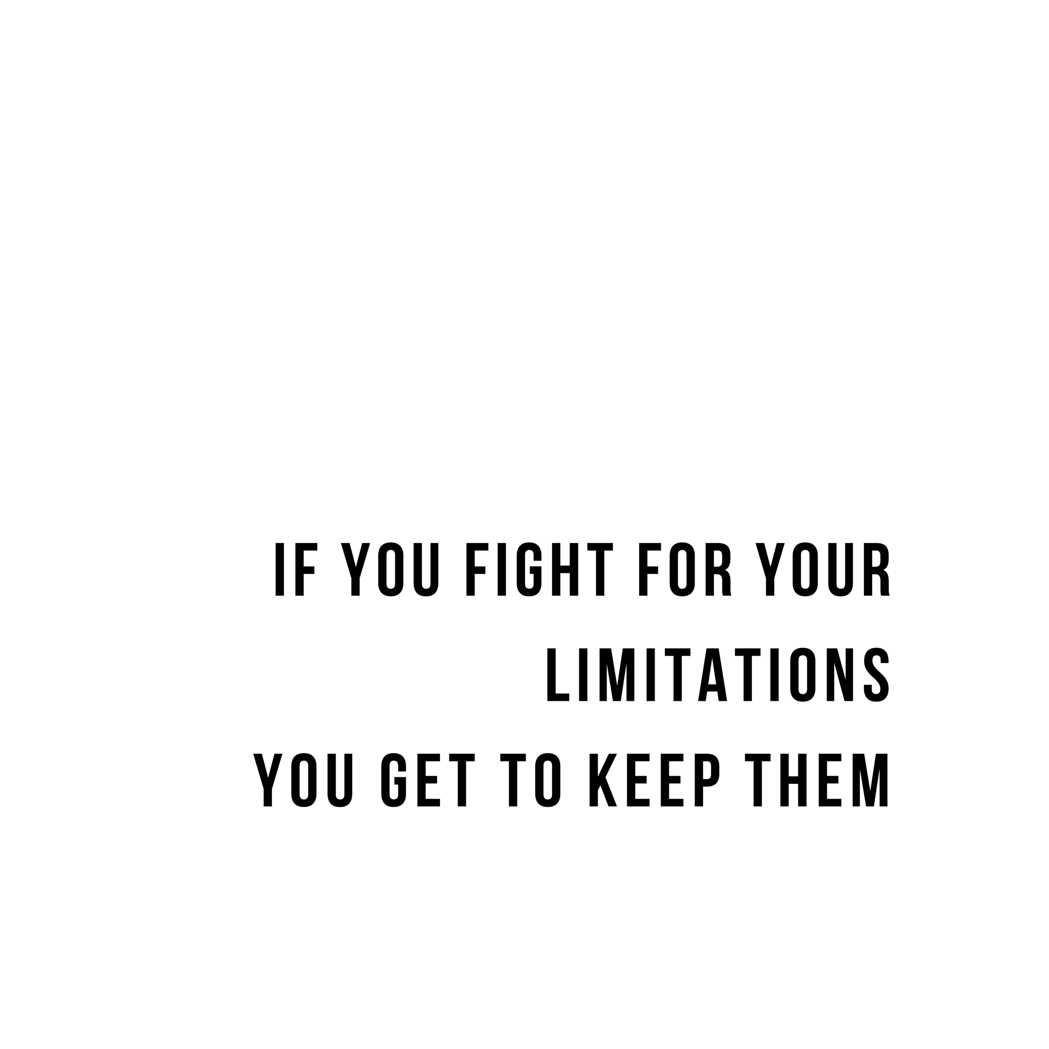 None of my limitations have been forced on me and weren’t even given to me. Some of them might be serving me…but I can’t think of one yet. I am fairly certain that none of them are worth fighting for. LET’S END THE FIGHT! Who is with me!?