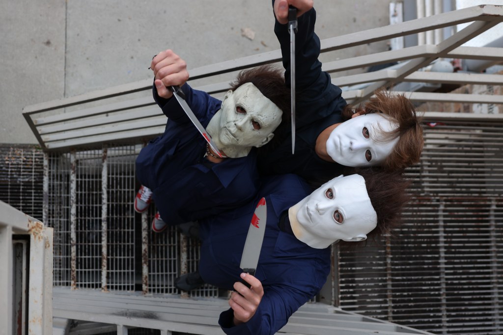 They began their date by picking up the boys and headed straight to the UNIVERSITY OF UTAH football game. The six of them cheered on the UTES (unfortunately the U had a tough loss to the OREGON DUCKS). They had fun regardless of the score. They left the game to change into their costumes. They met me in downtown Salt Lake and we snapped a few photos: